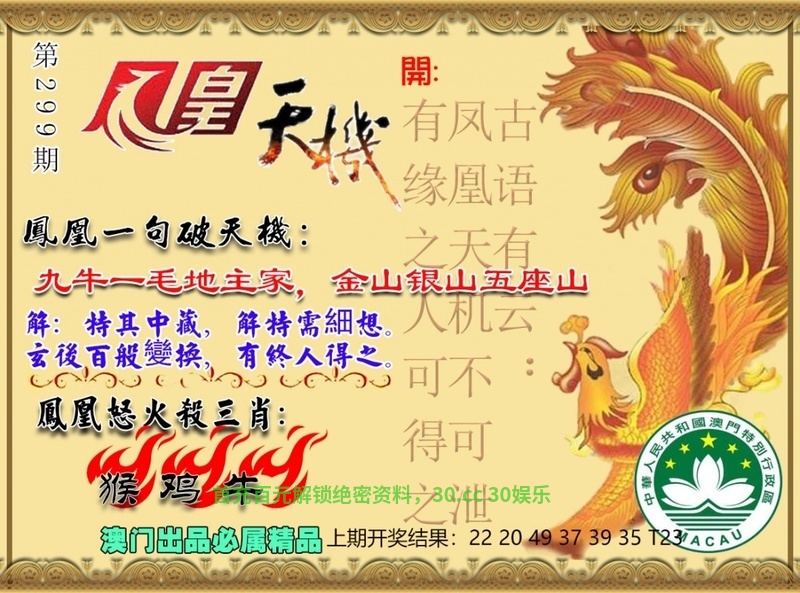 | 296期💦绝杀①尾💦「3尾」开猴22准 |